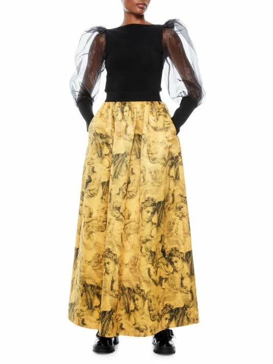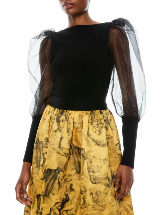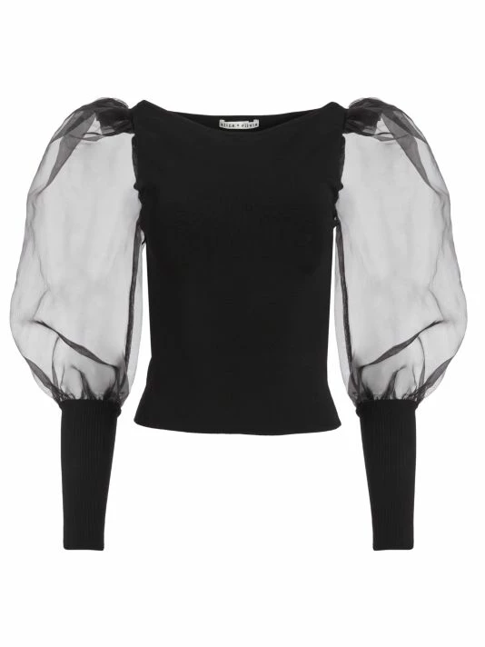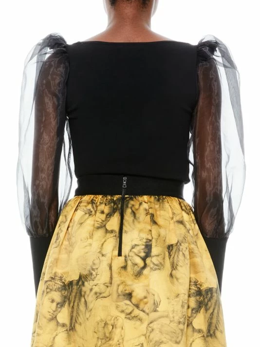 Exuding dramatic flair, this blouse flaunts structural tulle puff sleeves.