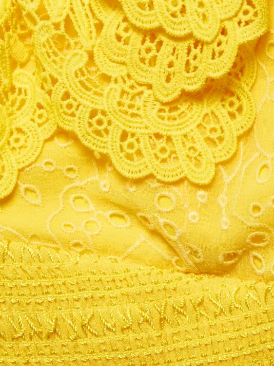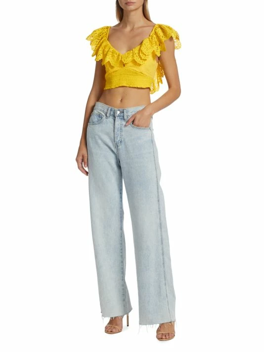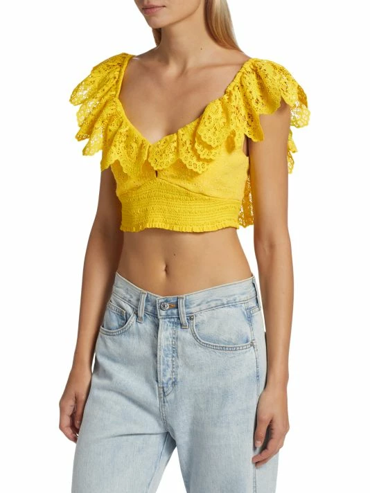 Alice + Olivia’s Bleeker crop top is adorned with ruffled lace trim and a smocked waist.