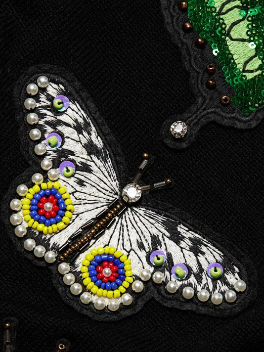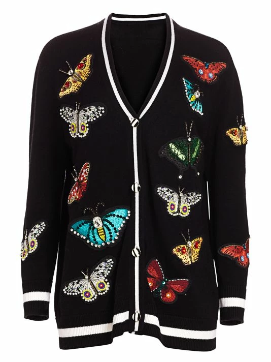 ONLY AT SAKS.COM. The classically preppy cardigan is given a whimsical update with colorful butterfly embroidery.
