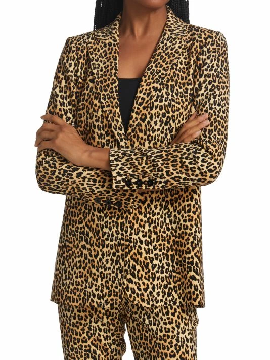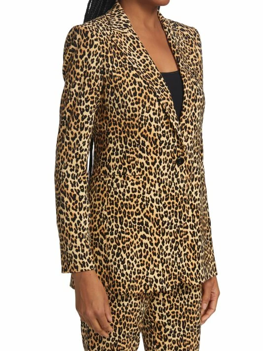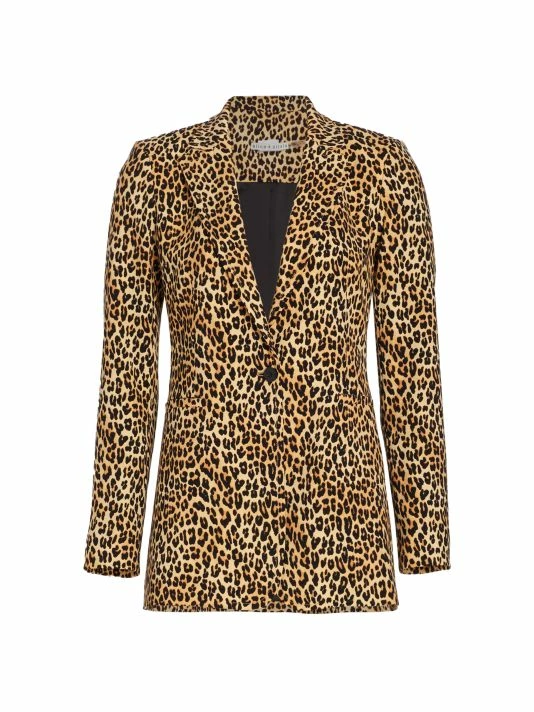 Adorned with leopard print, Alice + Olivia’s Breann fitted blazer is detailed with notched lapels and welt front pockets.