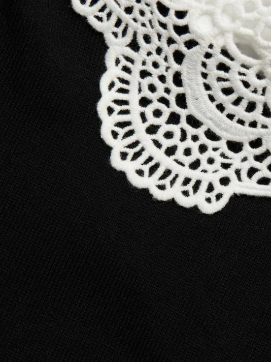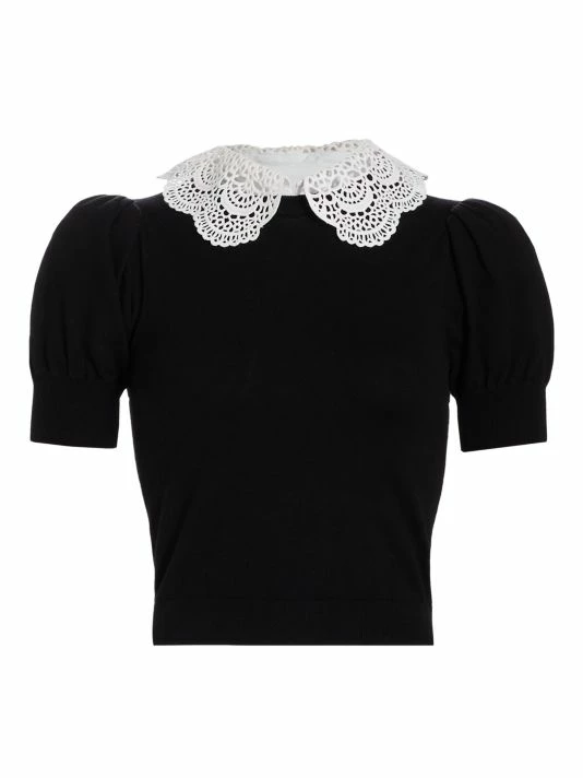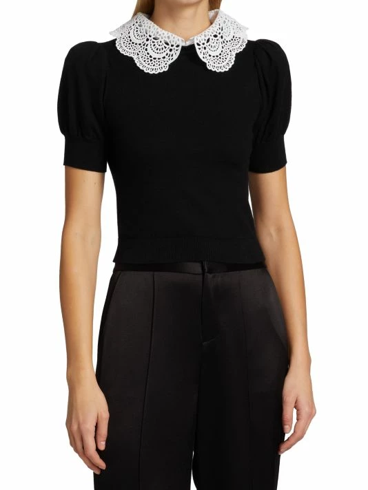 A removable eyelet collar tops this sweater top, designed with feminine puff sleeves.