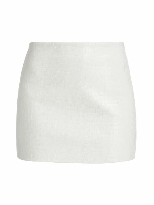 Alice + Olivia’s Elana mini-length skirt is crafted of croc-effect faux leather.