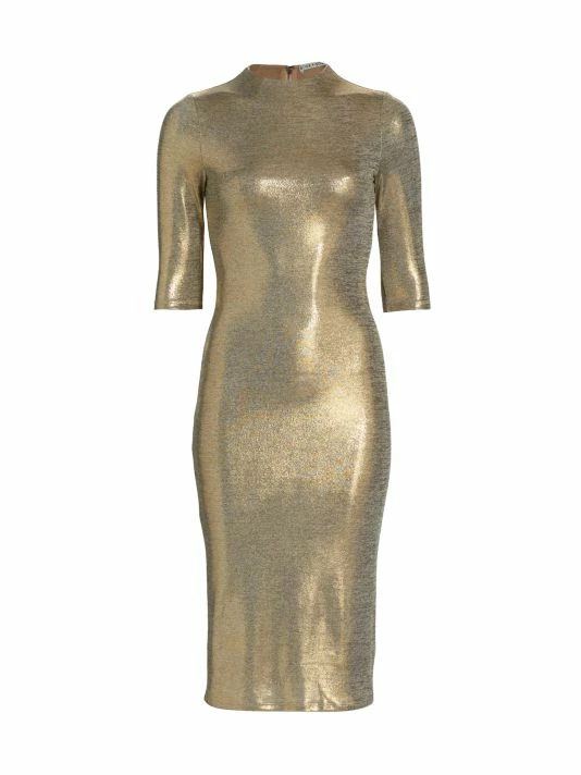 Cut in a body-con silhouette, Alice+ Olivia’s knee-length Delora dress boasts a mock turtleneck and lustrous metallic sheen.