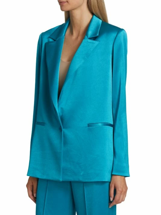 The Denny blazer by Alice + Olivia is crafted of satin in a single-breasted silhouette.
