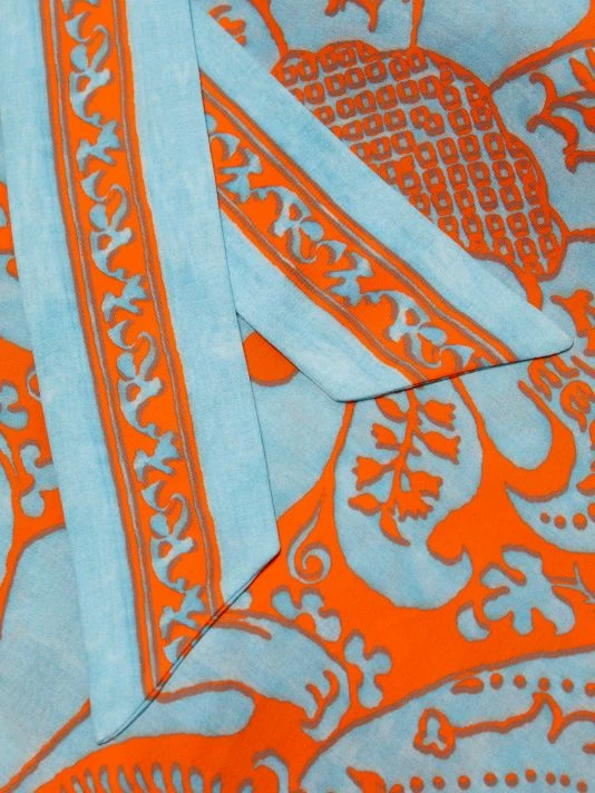 Alice + Olivia’s Domino wrap dress showcases an oversized paisley print. This versatile piece can be worn open as a robe for additional styling options.