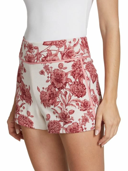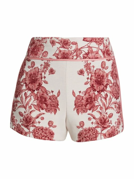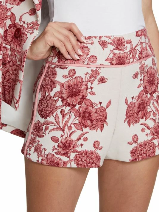 Alice + Olivia’s Donald shorts are cut from floral jacquard, featuring a high-rise waist and welt pockets at the back.