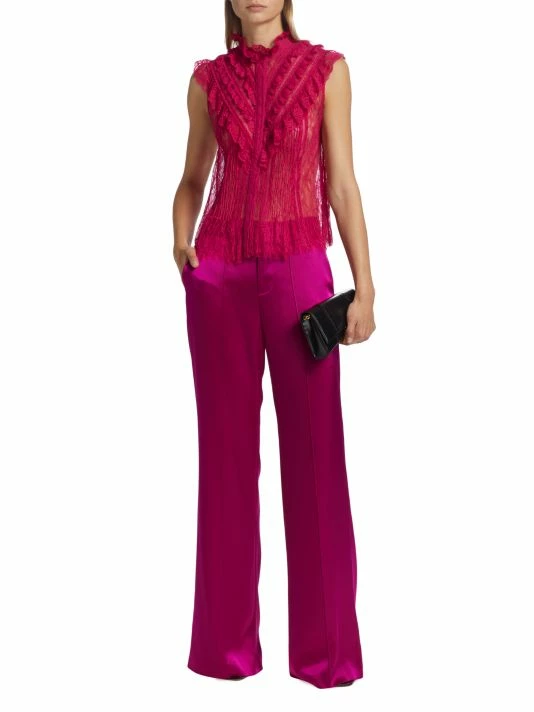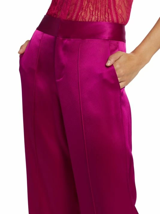 Crafted of smooth satin, the Dylan pants from Alice + Olivia feature a high-rise waist with tailored front pleats. Side on-seam pockets and back welt pockets finish this wide-leg style.