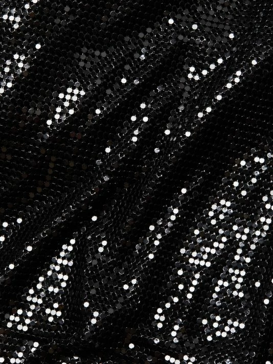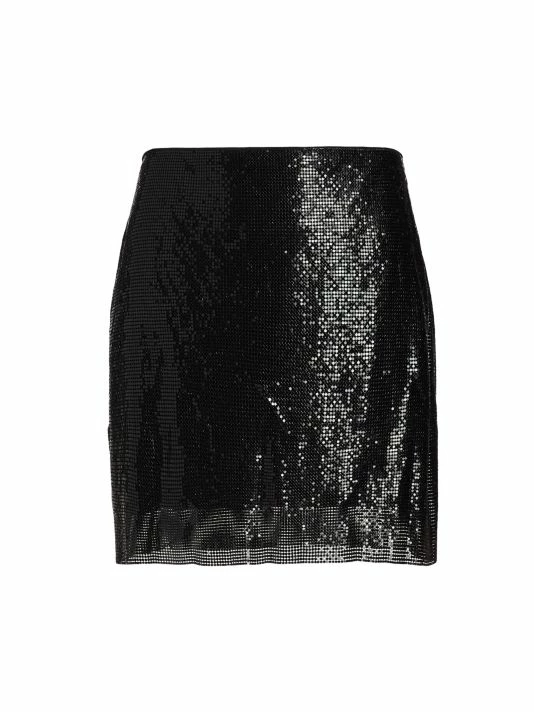 Cut in an A-line silhouette, Alice + Olivia’s semi-sheer aluminum Elana miniskirt is elevated by a lustrous chainmail construction.