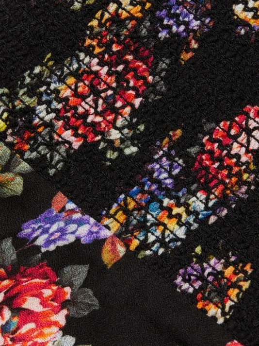 Alice + Olivia’s playful Glinda dress is crafted of crepe fabric. Decorated with pretty blooms, this mini-length dress features spaghetti straps, a smocked back, and a flared skirt.