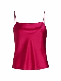 The Harmon tank from Alice + Olivia is crafted of lustrous stretch silk. A draped cowlneck and delicate spaghetti straps complete the look.