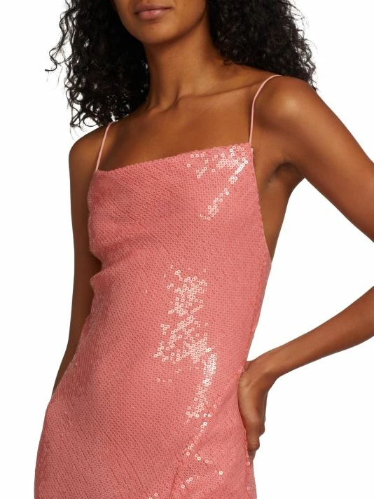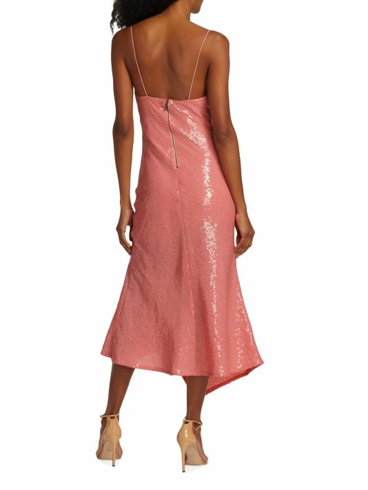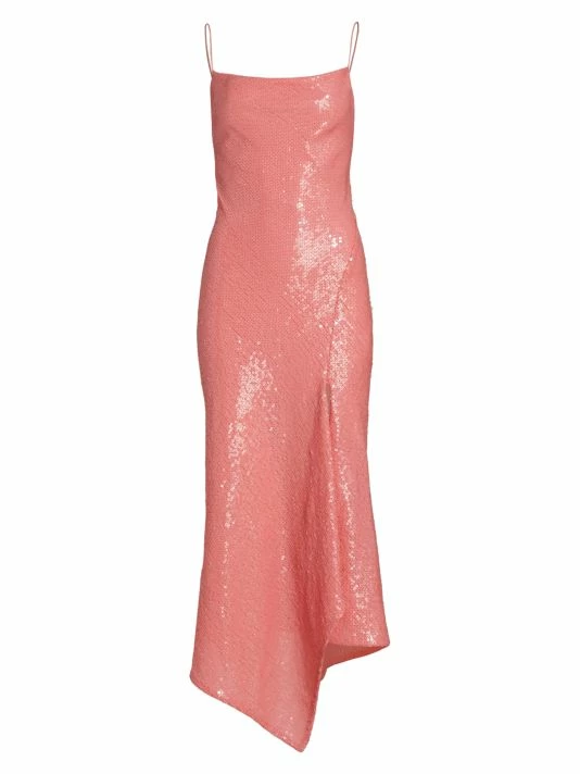 Embellished with shimmering sequins, the Harmony slipdress from Alice + Olivia features a cowlneck and delicate spaghetti straps. An asymmetric hem with a thigh-high slit elevates this midi-length silhouette.