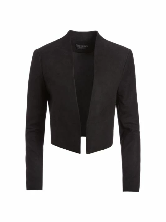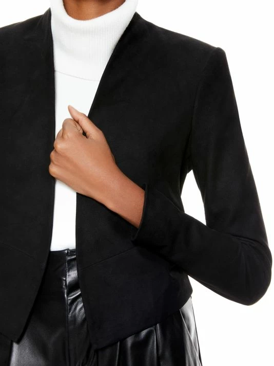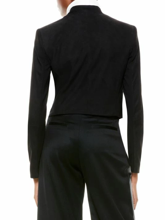 This cropped jacket is elevated with a suede finish.