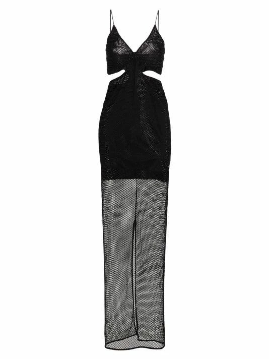 Alice + Olivia’s sequin-embroidered Havana maxi dress is elevated by wraparound side cut outs and a high back slit.