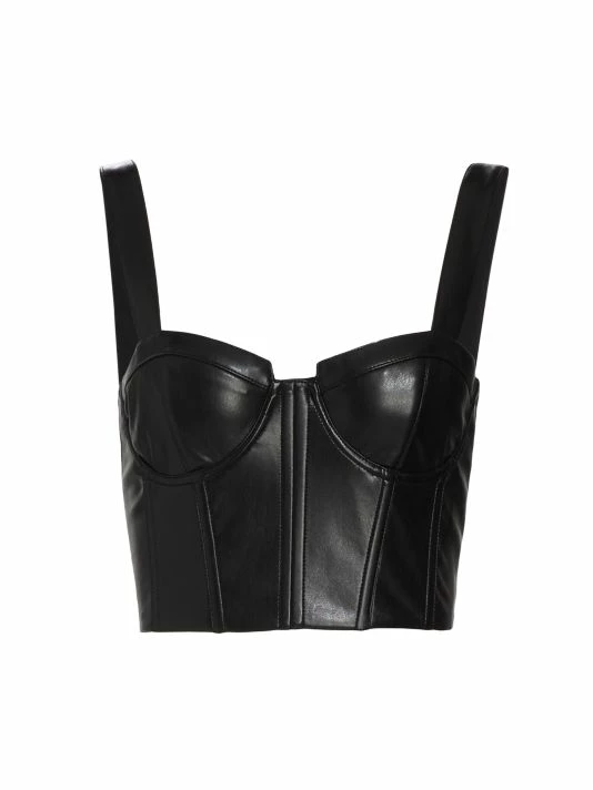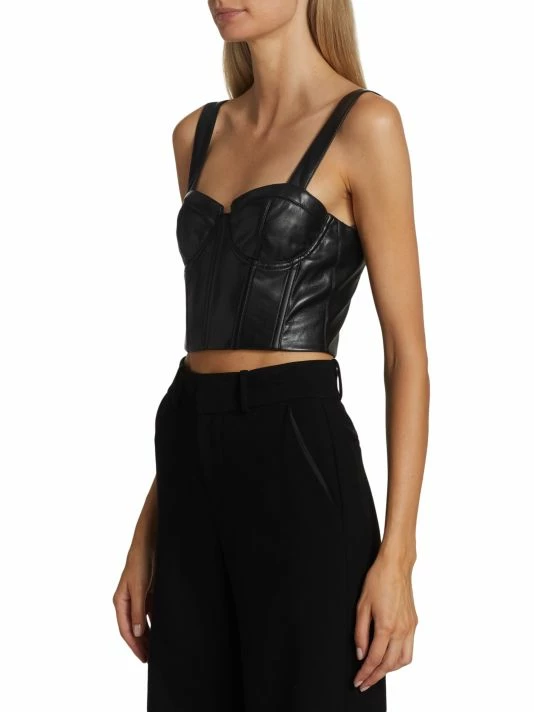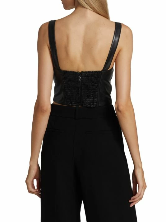Crafted of vegan leather, Alice + Olivia’s Jeanna bustier top is complete with a structured sweetheart neck and an open smocked back.
