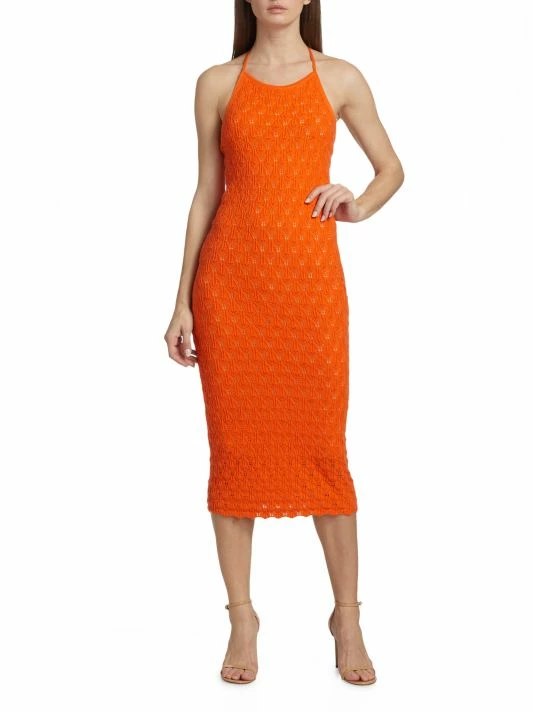 This sleek midi-dress is topped with a self-tie halterneck, crafted of a soft cotton-wool blend.