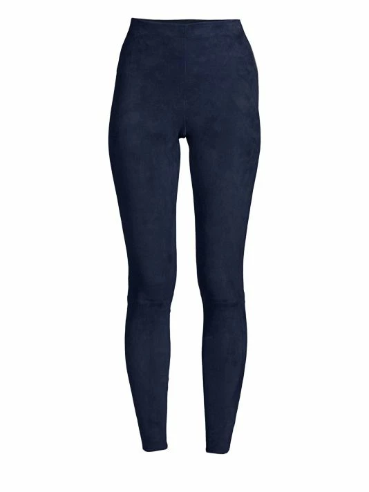 Sleek suede pants with a flattering high-waist silhouette.