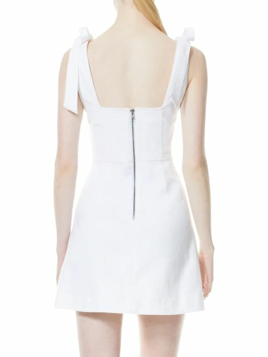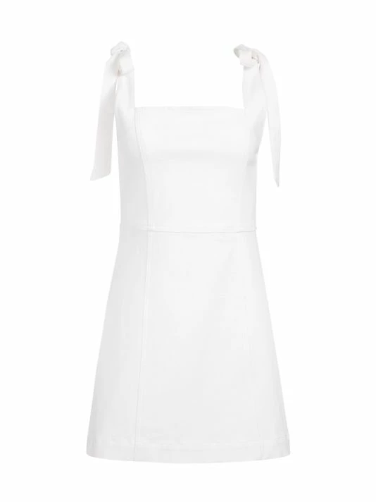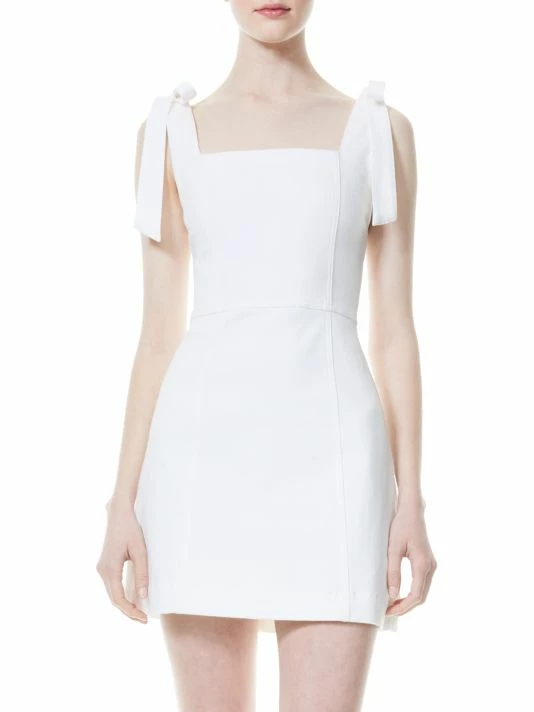 Structured minidress with sleek lines, featuring a square neckline and self-tie shoulder straps.