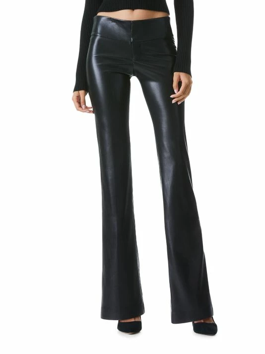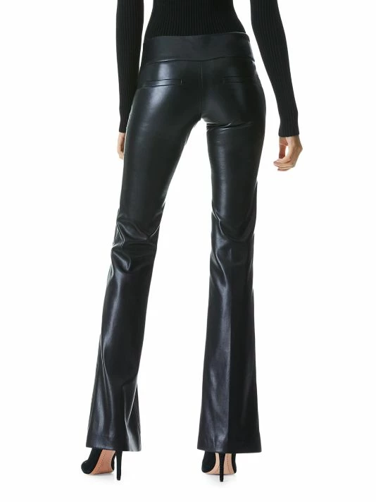 Faux leather fitted pants finished in a flared leg.