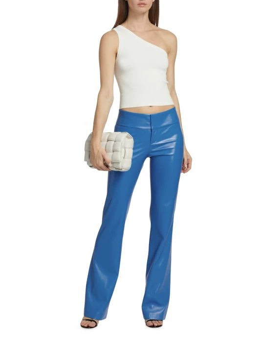 Alice + Olivia’s Olivia pants are a low-rise bootcut style crafted of vegan leather.