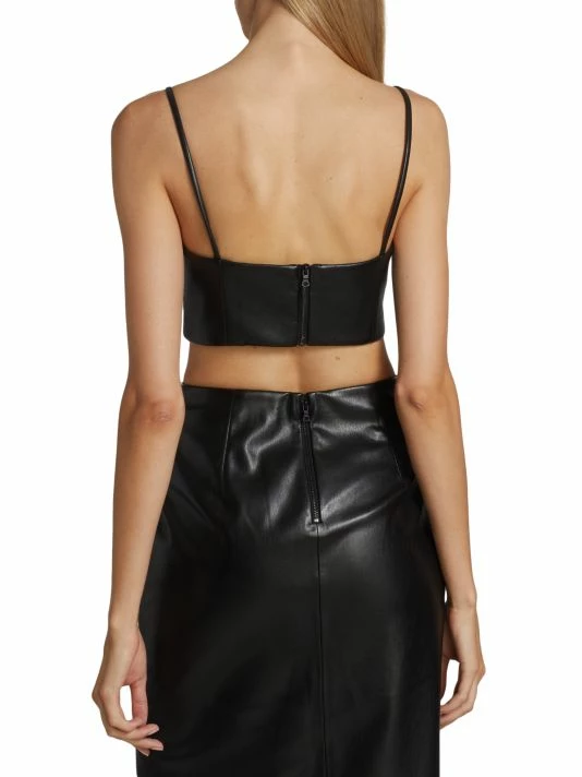 Crafted of smooth vegan leather, the Pearle crop top by Alice + Olivia is finished in a minimalist strappy style.
