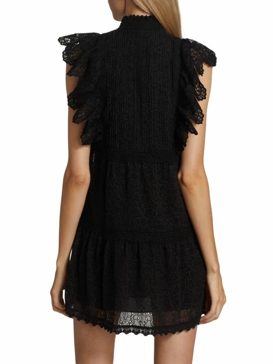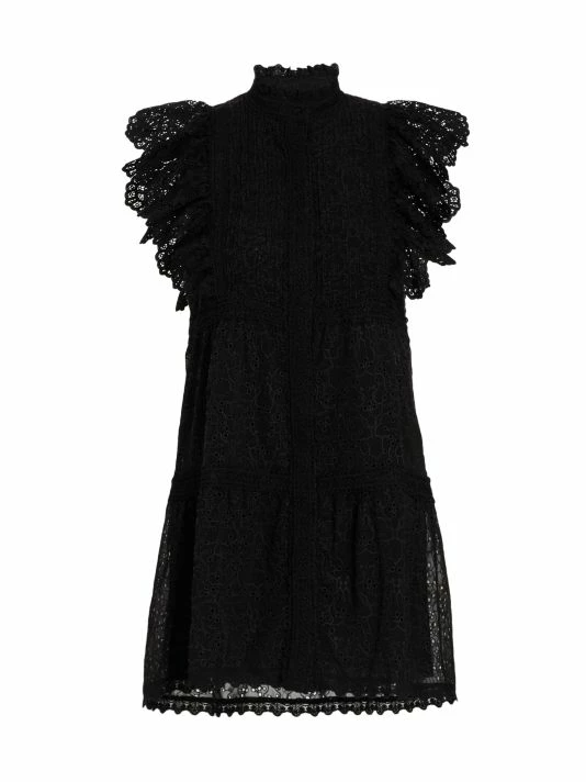 The Pimmy shift dress by Alice + Olivia is designed wtih flared cap sleeves and a tiered skirt.