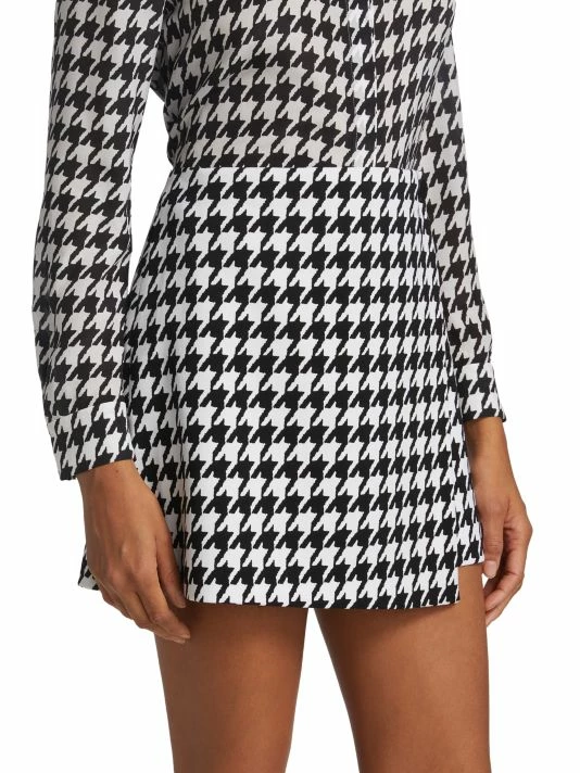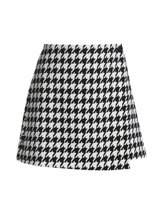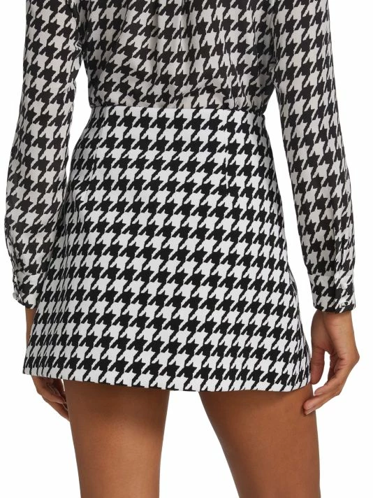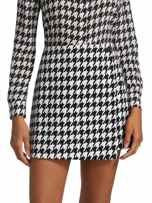 Cut in an A-line silhouette, this mini-length Alice + Olivia wrap skirt features a two-tone houndstooth pattern.