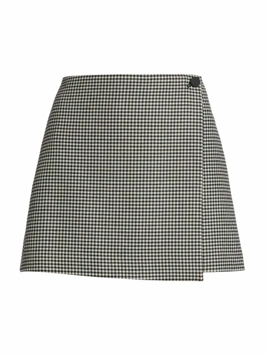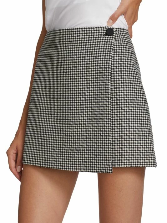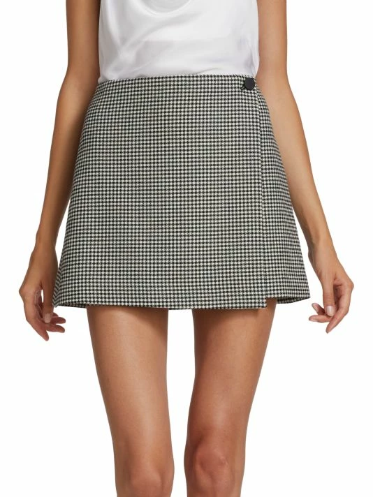 ONLY AT SAKS. Cut in a wrap silhouette, Alice + Olivia’s Renna miniskirt offers a micro houndstooth pattern.