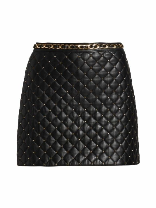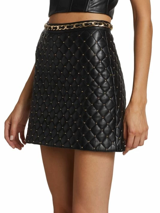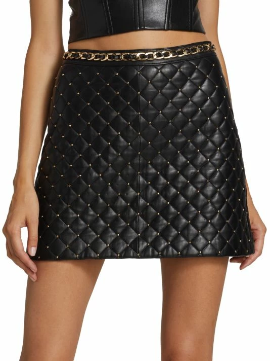 Crafted of quilted vegan leather, the Riley miniskirt from Alice + Olivia is finished with an embellished goldtone trim.