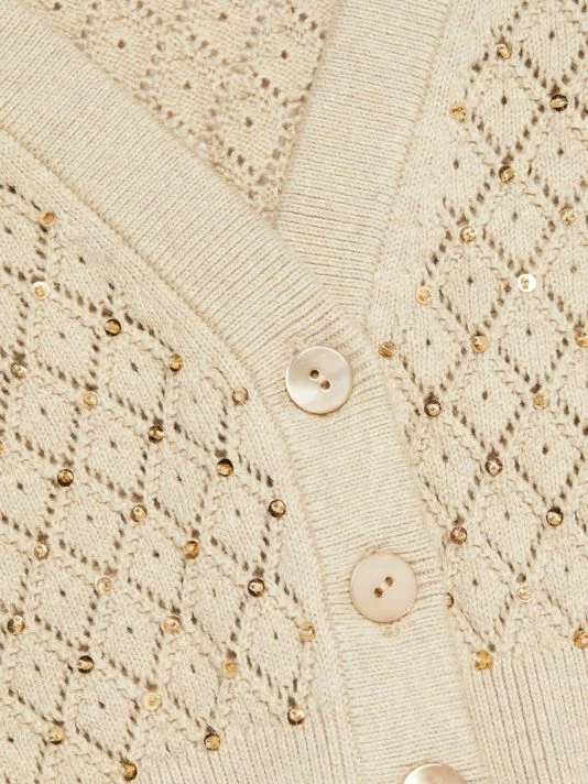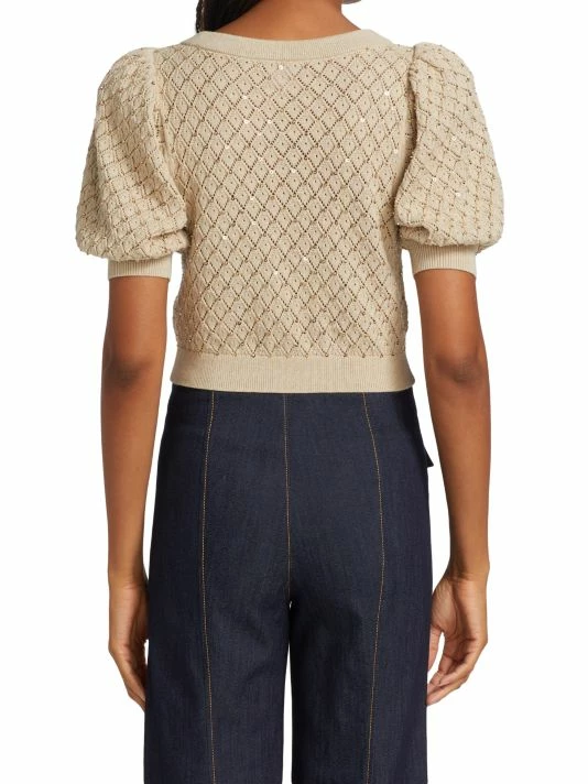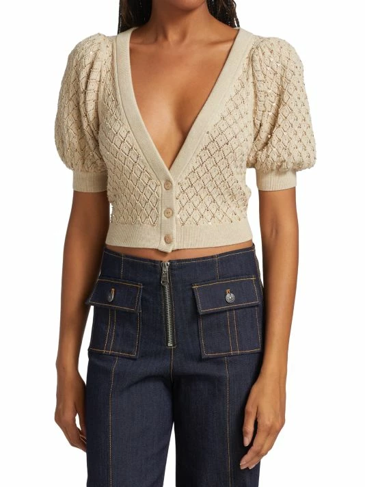 The Romi cropped cardigan from Alice + Olivia features short puff sleeves and a deep V-neck. This textured open-weave style is embellished with beads and sequins for a touch of shine.