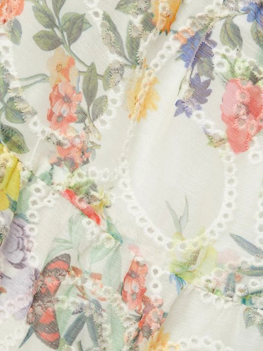 Made of floral eyelet lace, the Rowa top from Alice + Olivia features a square neck and square back with a relaxed, tiered bodice. Blouson sleeves with smocked cuffs finish this romantic style.