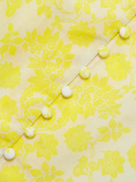 This cotton-silk blend button-front blouse is finished with voluminous bishop sleeves and smocked cuffs.