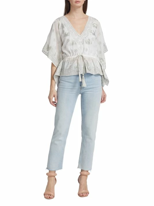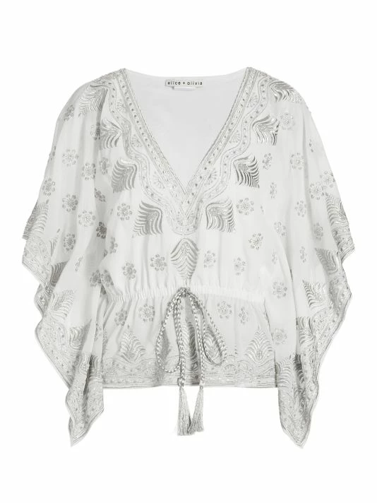 Alice + Olivia’s Sharita top has a kaftan silhouette with embroidery and beaded accents.