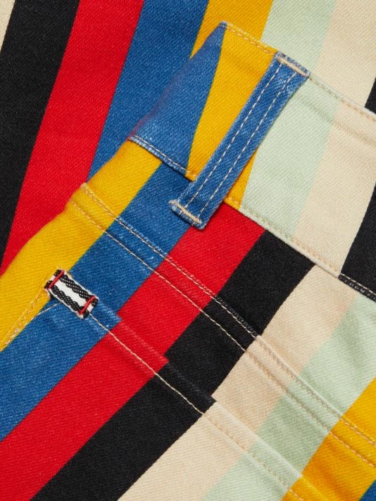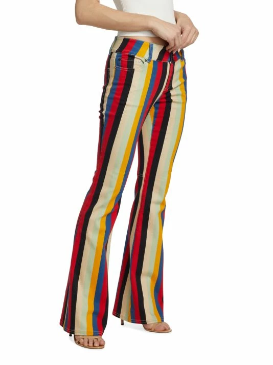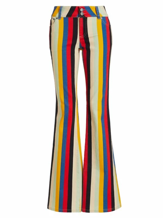 Slung with a chic mid-rise fit, these bell bottom pants elongate the leg with a striking vertical stripe.