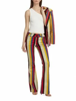 Alice + Olivia Stacey Striped Mid-Rise Bell Bottom Pants