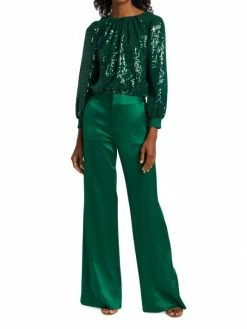 Alice + Olivia Dylan High-Waist Pintuck Trousers Black
